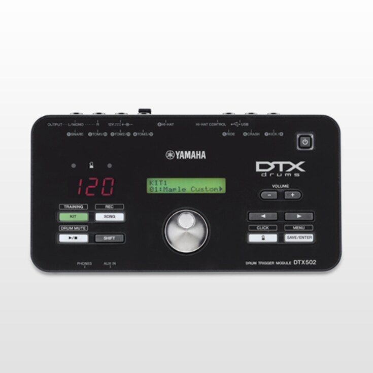 Mientras que el exterior mantiene el familiar diseño del DTX500, en el interior del DTX502 late un Nuevo corazón. Hemos tomado los sonidos de batería más famosos de Yamaha y los hemos hecho aún mejores, y después hemos añadido 250 nuevas voces, incluidos sonidos de batería y platos con licencia de los mejores desarrolladores de VSTs que se han optimizado para el DTX. También hemos afinado al máximo los ajustes de disparo de este módulo y los hemos hecho fáciles de usar, de modo que los pads y los disparadores ofrecen más expresión que nunca. Con las funciones de aprendizaje ampliadas puedes convertirte en un mejor batería, y con la función de importación de ficheros wave puedes añadir tus propios y nuevos sonidos. El módulo admite hasta 12 señales de disparadores y nuestro nuevo diseño permite una fácil integración en un montaje híbrido acústico/electrónico.