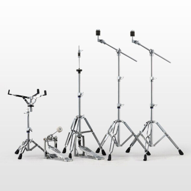 Todas las patas de los soportes de este set de hardware se han realizado con doble pletina, para lograr una estabilidad excepcional. El set es ligero, pero el pedal de bombo de cadena y su extrema solidez le permite incluso enfrentarse al Rock más poderoso.