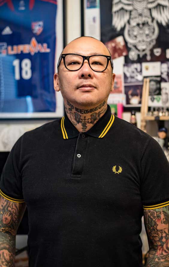 Hiro was born in Tokyo where tattoos are still considered taboo today. As a young teenager, Hiro received his first exposure to the tattoo word through the music he loved – punk rock. This passion drove him to practice tattooing his friends with jailhouse machines until he eventually landed an apprenticeship with world-famous tattoo artist Bob Roberts at the legendary Spotlight Tattoo shop in LA.