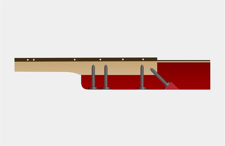 Unión del mástil al cuerpo angulada con 6 tornillos