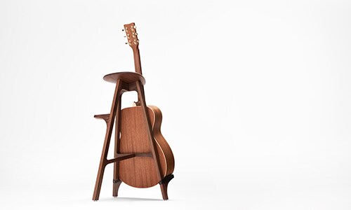 Diseñadas por Yamaha, estas banquetas tienen la función adicional de soporte de guitarra. Los salientes de las patas permiten alojar la guitarra sin dañarla, transformándose el conjunto en un práctico soporte para el instrumento. Otro saliente superior es perfecto para apoyar el pie mientras se toca sentado. El asiento tiene forma de púa de guitarra, y a su vez la superficie es anatómica y cómoda. Yamaha diseñó un prototipo conceptual de este mueble en 2010, que se produce desde 2019 para el mercado chino de la mano del fabricante MEXARTS. El año pasado, , Yamaha Ibérica fue pionera en su introducción puntual en Europa con una producción limitada, como complemento a una campaña de presentación de la serie de guitarras TransAcoustic.