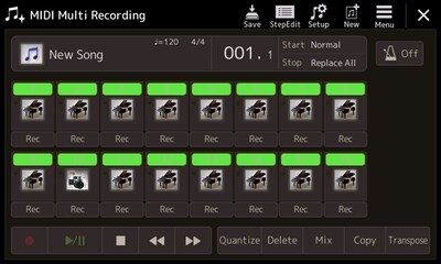 Graba rápidamente tu interpretación como un archivo de audio (WAV) o MIDI estándar, con la función Quick Recording (Grabación rápida). Para arreglos más complejos, la función Multi Recording (grabación múltiple) te ofrece un secuenciador de 16 pistas MIDI muy completo, con funciones en tiempo real y grabación por pasos.