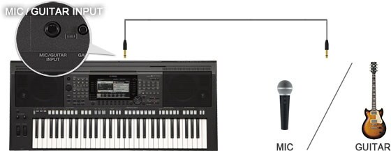 El PSR-S770 viene equipado con una entrada de Micrófono/Guitarra que le permite añadir voces o guitarras a sus actuaciones en directo con facilidad. Simplemente conecte un micrófono y podrá asignar fácilmente cualquiera de los versátiles efectos del PSR a la voz. O conecte una guitarra y ajuste los parámetros que encajen en sus preferencias y emule el sonido de sus artistas favoritos, ¡o cree un sonido con su propio estilo!