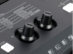 Dos potenciómetros de control en tiempo real te permiten filtrar y ajustar el sonido como en un sintetizador analógico. La rueda de pitch bend ajusta la afinación del sonido, dando vida a Voces como la Trompeta o el Saxo.