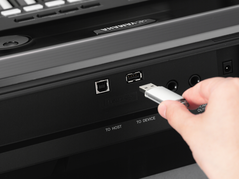 Conecta un dispositivo USB en el puerto USB TO DEVICE del instrumento. Esto te permite cargar y salvar tus ajustes, canciones, además de transferir datos desde la memoria USB al instrumento.