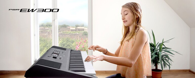 Junto a las versátiles funciones, el potente sistema de sonido, y el amplio teclado de 76 notas sensibles a la pulsación, el PSR-EW300 es la elección perfecta para el principiante.