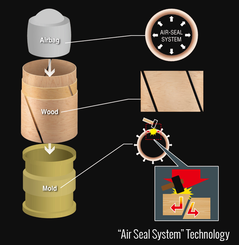 Se inserta una bolsa de aire con la forma, dentro de las capas, y se infla para aplicar presión uniforme alrededor.