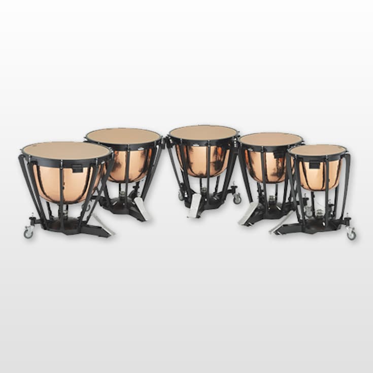 The top-of-the-line timpani series features cambered hammered copper bowls and the pedal balance spring system. The cambered bowls deliver ample volume as well as optimum resonance and decay. The lineup includes 24-inch and 27-inch models for expanded musical potential.
