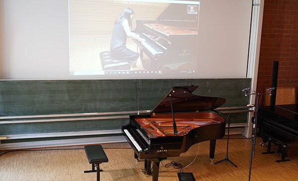 Debido a la situación generada por el Coronavirus, la Universidad de Música de Freiburg ha tenido que pensar en nuevas formas de ofrecer a los pianistas la oportunidad de poder participar en las pruebas de acceso, para las cuales necesitaban desplazarse a Freiburg y tocar en directo frente a un tribunal. Nosotros utilizado dos pianos Yamaha Disklavier desde hace 15 años para la investigación y el desarrollo pianístico con grandes resultados. También hemos desarrollado algunas clases en remoto, pero esta ha sido la primera ve que lo hemos utilizado para las pruebas de acceso. Las teclas del piano en Friburg se movían en perfecta sincronía con el video que nos llegaba del alumno en Shanghai y Tokyo. A pesar de los 10.000 km de distancia, todo el mundo sintió que la prueba se estaba desarrollando en directo en el auditorio.
