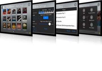 Toca la pantalla para configurar el modo “Dual” (combinando dos Voces diferentes en capas) o “Split” (dividiendo el teclado entre izquierda y derecha y asignando diferentes Voces a cada lado) de forma sencilla e intuitiva. Los ajustes se hacen cómodamente tocando el nombre de la canción en la pantalla de canciones y el nombre y tipo de la reverb en la pantalla de ajustes de reverb y efectos.