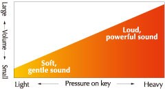 El sonido en un piano acústico tarda mucho tiempo en atenuarse. Con solo cambiar la presión que aplican sobre las teclas, los pianistas pueden cambiar el volumen del sonido y la dinámica, para lograr así timbres más dulces o más brillantes.