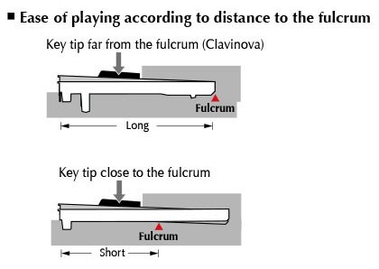 Cuando se toca en un piano digital, la parte trasera de las teclas puede convertirse en un reto para lograr una expresión musical completa. Esto es debido a que la parte trasera de las teclas es la más cercana al punto de pivote de la acción. Cuanto más cerca de este punto de pivotaje se pulse una tecla, menos capacidad de apalancamiento (balanceo) se tiene y, por tanto, más fuerza hace falta aplicar. La mayor longitud de las teclas GrandTouch aumenta el margen de apalancamiento, lo que permite un mejor control expresivo, incluso en la parte trasera de las teclas. Se trata de la misma longitud de apoyo que tienen las teclas del piano de cola de alta gama S3X de Yamaha (a abril de 2017), y es la mayor longitud de apoyo utilizada hasta hoy en un piano digital.