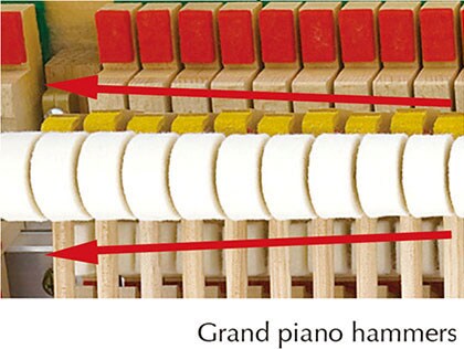 Es más, hemos incluido un mecanismo que simula el lanzamiento de los macillos en un piano de cola, recreando la misma sensación de escape en la parte final del recorrido de la tecla. GrandTouch emula tanto la sensación de lanzamiento del macillo característica del mecanismo de escape, y la sensación de parada que viene justo después.