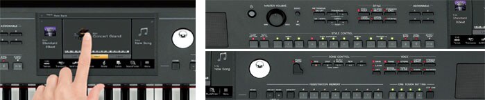 La sencilla interfaz de usuario tiene una pantalla táctil que la hace fácil de usar. Los demás botones están situados en lugares fáciles de ver y alcanzar del panel de control. El CVP-609 no tiene rival en cuanto a facilidad de uso.