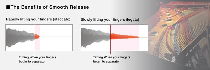 Clavinova reproduce con sutileza incluso las resonancias únicas de un piano de cola. Incluye la resonancia de cuerdas, que expresa el suave sonido de las demás cuerdas resonando, y muestras de liberación de tecla (Key-off), que realmente proporcionan el delicado cambio en el sonido en el instante en que el apagador toca la cuerda, justo antes de levantar el dedo de la tecla. El añadido de estos sonidos da como resultado resonancias tonales que son no sólo hermosas, sino también ricas y profundas.
