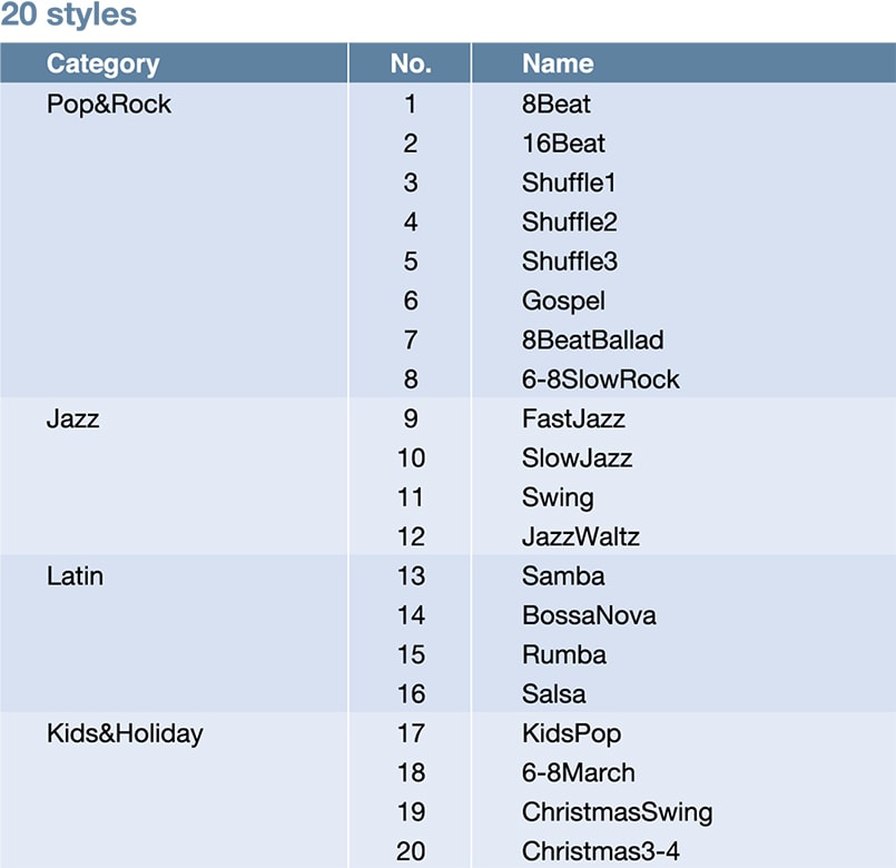 El P-125 incorpora pistas de Batería y Bajo para que toques siempre a tempo. Hay una gran variedad de patrones rítmicos dependiendo del estilo con el que quieras tocar. Desde rock a baladas, usa los ritmos para divertirte mientras estudias, o simplemente úsalos como un batería virtual en tus interpretaciones.