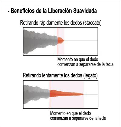 Liberación suavizada, una respuesta a la pulsación del pianista excelente, del staccato al legato