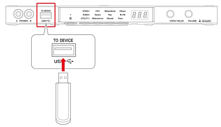 Puedes grabar tus interpretaciones de dos formas distintas: puedes grabar directamente sobre el sistema, o utilizar el puerto USB para grabar directamente audio en formato WAV sobre un pendrive, que podrás reproducir en un ordenador. El sistema de grabación es realmente sencillo de utilizar, con un nivel gran nivel de calidad que permitirá que analices tus progresos, ya que podrás transferir fácilmente las grabaciones para escucharlas donde prefieras.