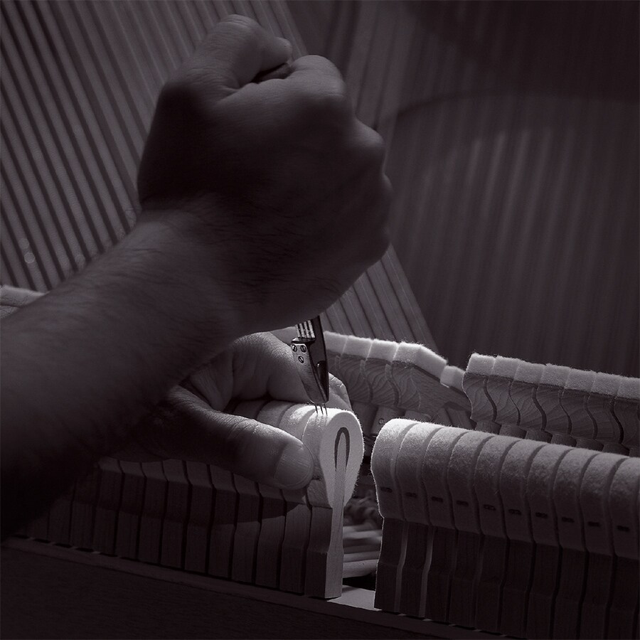 En la construcción de un piano se utilizan aproximadamente 8000 partes, muchas de las cuales están fabricadas con materiales naturales que tienen diferencias claras y sus propias características individuales. Para maximizar las características de cada material y crear el sonido ideal, Yamaha realiza una investigación intensiva de todos y cada uno de ellos. El arte que se dedica a cada piano individual es un equilibrio exquisitamente delicado entre la artesanía tradicional que aprovecha al máximo esas características y las técnicas de producción de vanguardia que garantizan una precisión constante.