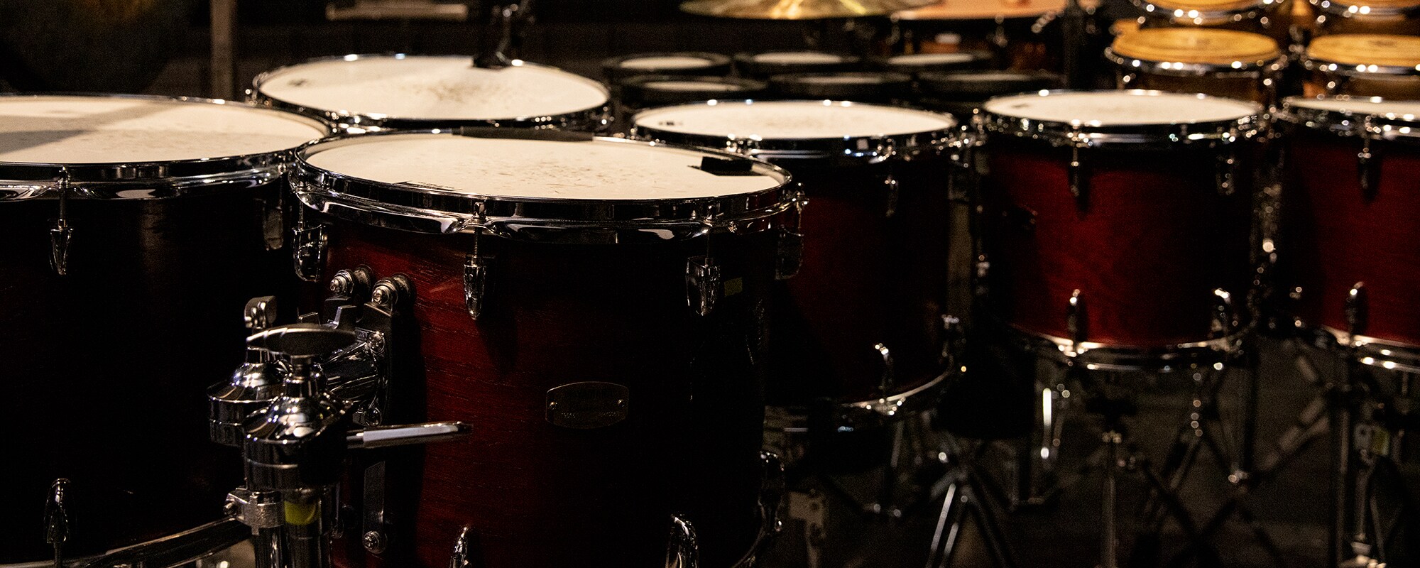 Instrumentos de percusión sinfónica y de orquesta de Yamaha: timbales, bombos, cajas, marimbas, xilófonos, vibráfonos, campanas, etc.