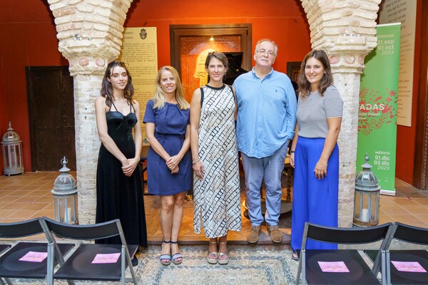 De izquierda a derecha: Carmen Pérez (pianista y alumna de la Fundación Barenboim-Said), Muriel Páez (Directora de la fundación Barenboim-Said), Maria Dolores Gaitán (pianista, directora del FIP Guadalquivir), Sebastián de la Obra (historiador, Rector de la casa Sefard de Córdoba), Laura Vázquez (Responsable de Piano, Yamaha Music Iberica)