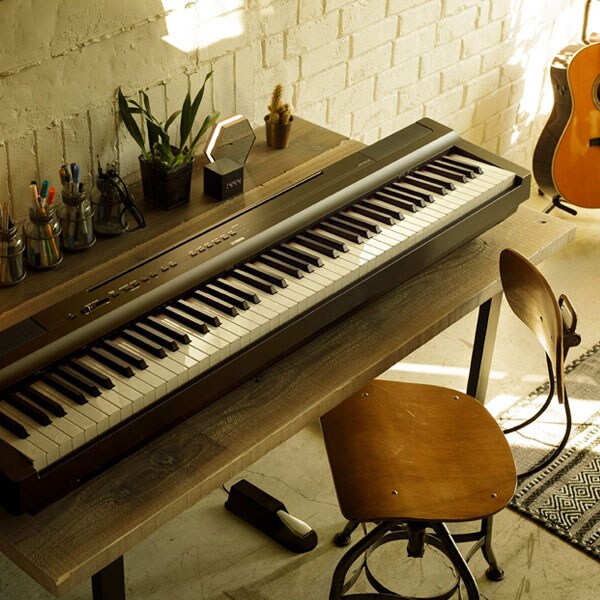 Estilizado, fácil de transportar y sumamente versátil, todo a la vez: Nuestra serie P es idónea para aquellos a los que les gusta llevarse la música de viaje. El P-125, por ejemplo, deslumbra con un sonido dinámico de alta calidad a pesar de sus dimensiones compactas, gracias al motor de sonido Pure CF de Yamaha. Las 88 teclas ofrecen un tacto natural y una ejecución auténtica semejante a la de un piano acústico. El sistema de altavoces integrado proporciona un sonido brillante en cualquier momento y en cualquier lugar.