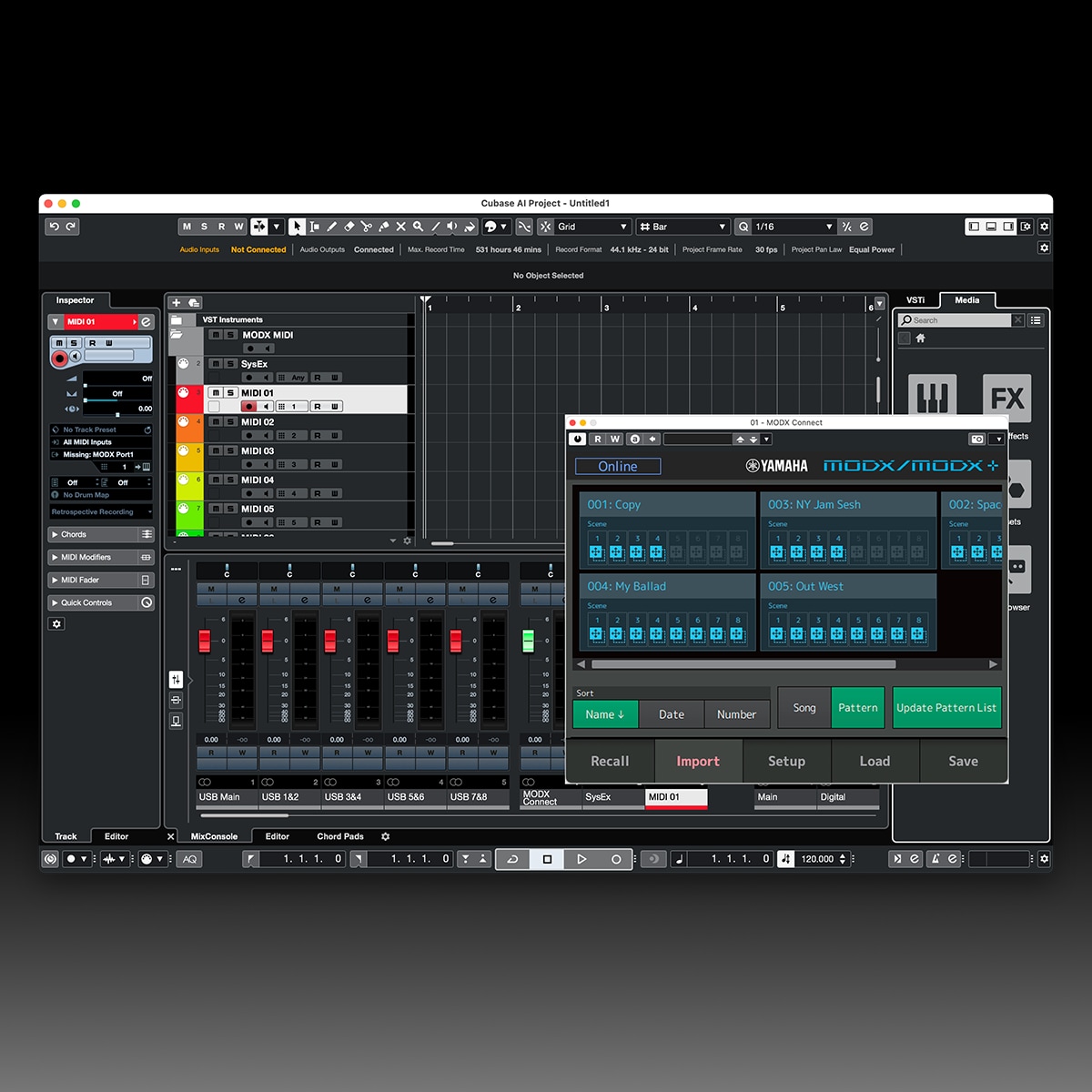 MODX+ Connect, basado en la tecnología VST3 de Steinberg, funciona como un plug-in VST3 con la serie Cubase. MODX+ Connect también funciona de la misma forma que otros instrumentos de software VST, y permite guardar los ajustes editados del MODX+ o utilizarlos para otro proyecto.