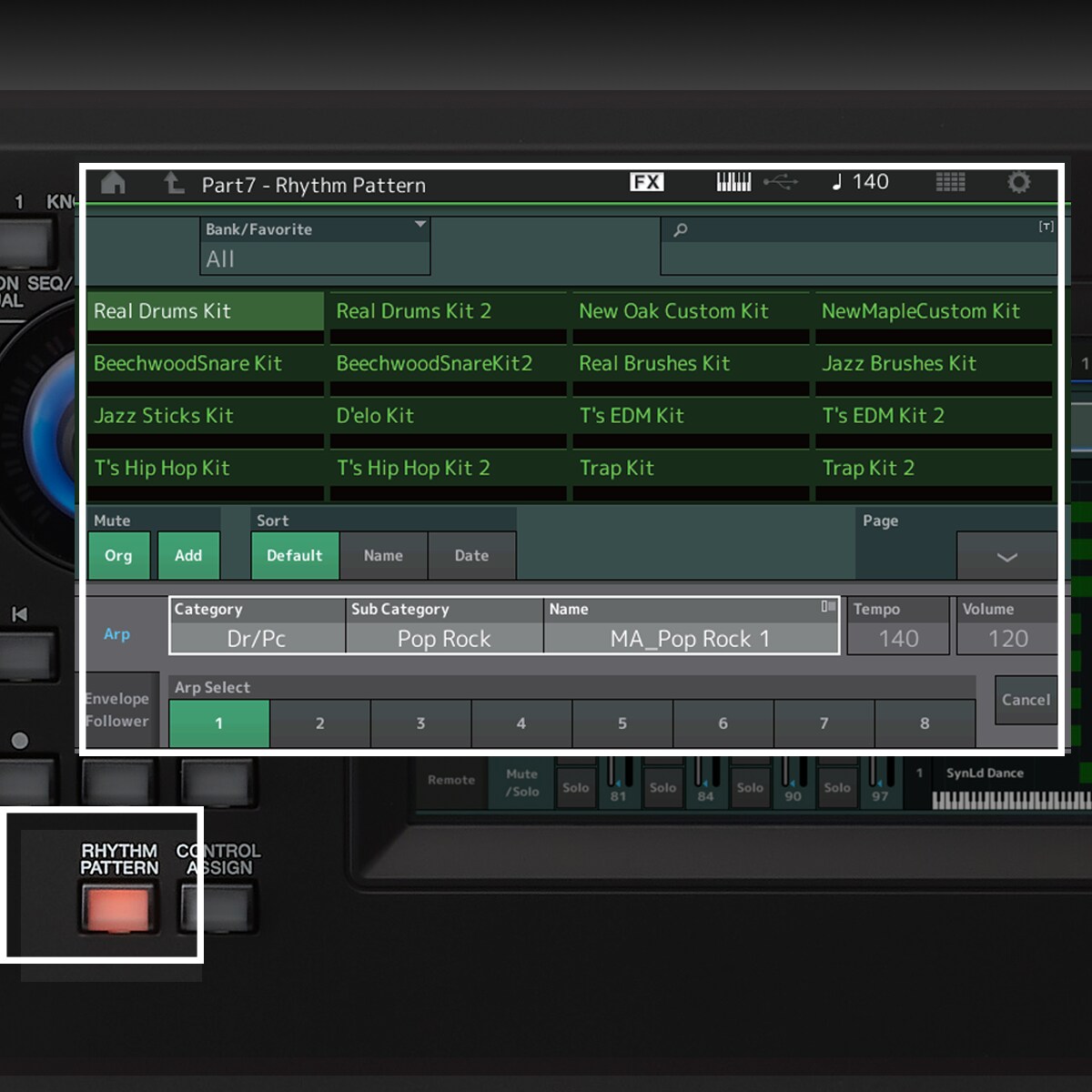 ¿El baterista llegando tarde de nuevo? MODX+ incorpora Rhythm Pattern, una caja de ritmos de fácil acceso con miles de patrones, desde un botón del panel central. Añade al instante ritmos cuando practiques, compongas o sigas esperando a que aparezca el baterista en la sala…