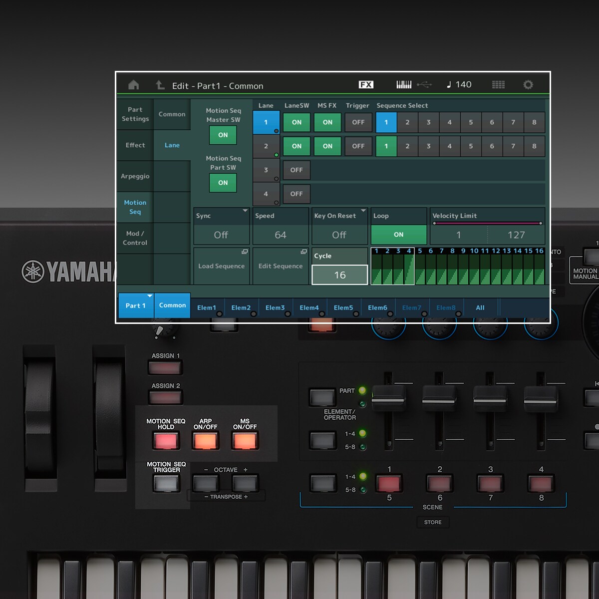 Todo lo que amas del legendario DX7 se beneficia ahora de las últimas innovaciones de Yamaha. FM-X Reproduce el clásico sonido de sintetizador EDM de los ’80, con un rango dinámico increíble, gran potencia y con toda la fidelidad. MODX+ va más lejos, profundizando en la capacidad original del DX7, operando con una arquitectura interna de 8 motores FM, polifonía de 128 notas, muchos tipos de filtros, y mucho más. Todo ello sumado a la tecnología Motion Control para controlar y cambiar texturas y crear sonidos tan únicos como inéditos sobre la marcha.