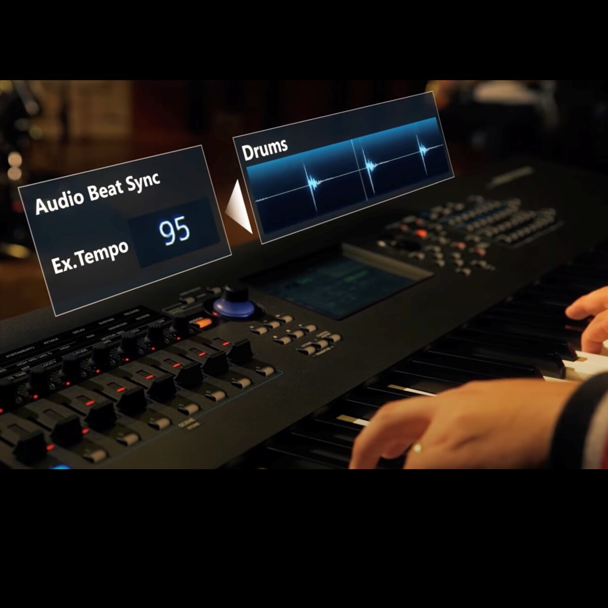 ABS (Audio Beat Sync) detecta el tempo rítmico de dispositivos externos como, por ejemplo, baterías electrónicas, cajas de ritmos o reproductores de audio conectados a la entrada A/D y sincroniza las funciones Arpeggiator, Motion Sequencer o Songs al tempo detectado en la entrada externa. El sintetizador MODX+ "escucha" la música cuando suena y toca a tiempo con ella.