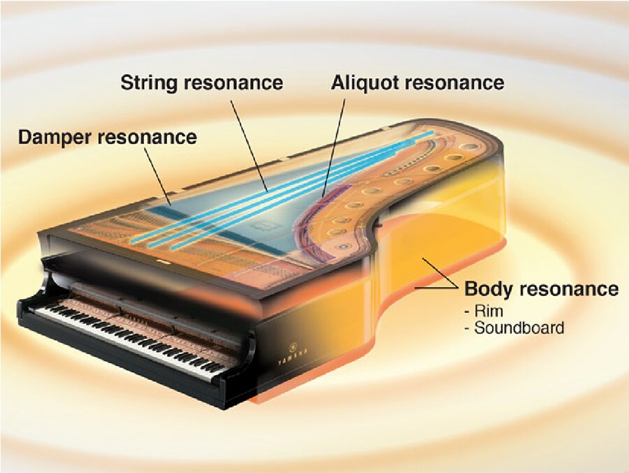 “Aliquot” es un sistema de encordado para pianos que utiliza cuerdas adicionales en las octavas superiores para enriquecer el timbre. En un piano acústico, estas cuerdas vibran por simpatía con otras cuerdas, resonando con armónicos y añadiendo riqueza, brillo y complejidad al sonido. Como no tienen apagadores, continúan sonando incluso al soltar las teclas y levantar las manos del teclado.