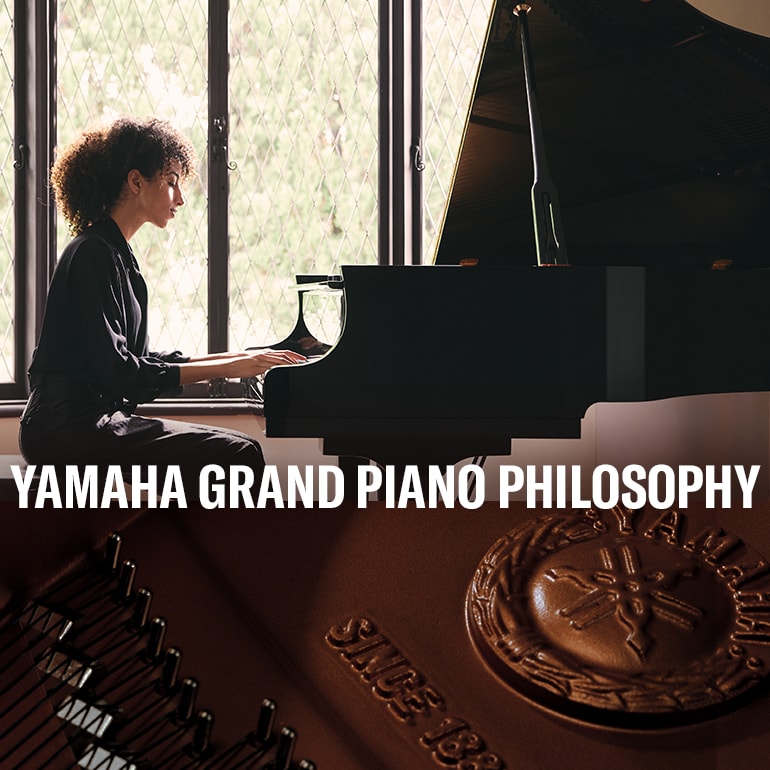 Los pianos de cola Yamaha encarnan una filosofía de diseño única, la del "piano cantante". Esta concepción ofrece al músico la misma libertad de expresión de la que gozan los cantantes que pueden expresar sus sentimientos sin barreras. Hemos elaborado un piano que incorpora la capacidad de "canto" en el cuerpo del instrumento, fruto de nuestro concienzudo estudio sobre cómo la energía con la que se toca una tecla produce sonido y cómo este sonido se transfiere por el espacio.